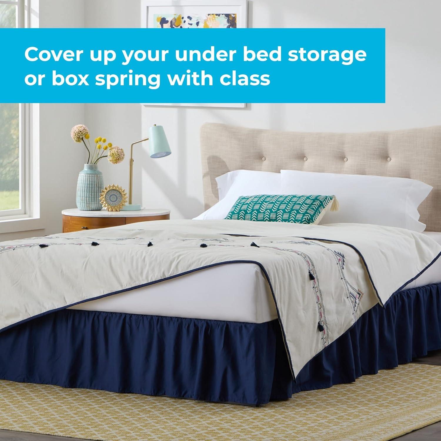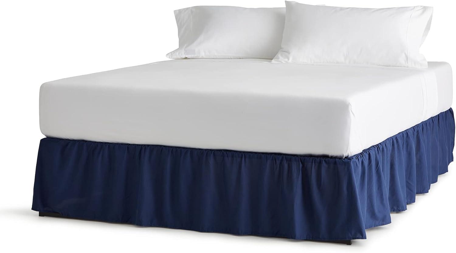 Linenspa 14 Inch Microfiber Ruffle Bed Skirt - Wrinkle and Fade Resistant - Machine Washable - Easy Use Ruffle Bed Skirt(Navy)