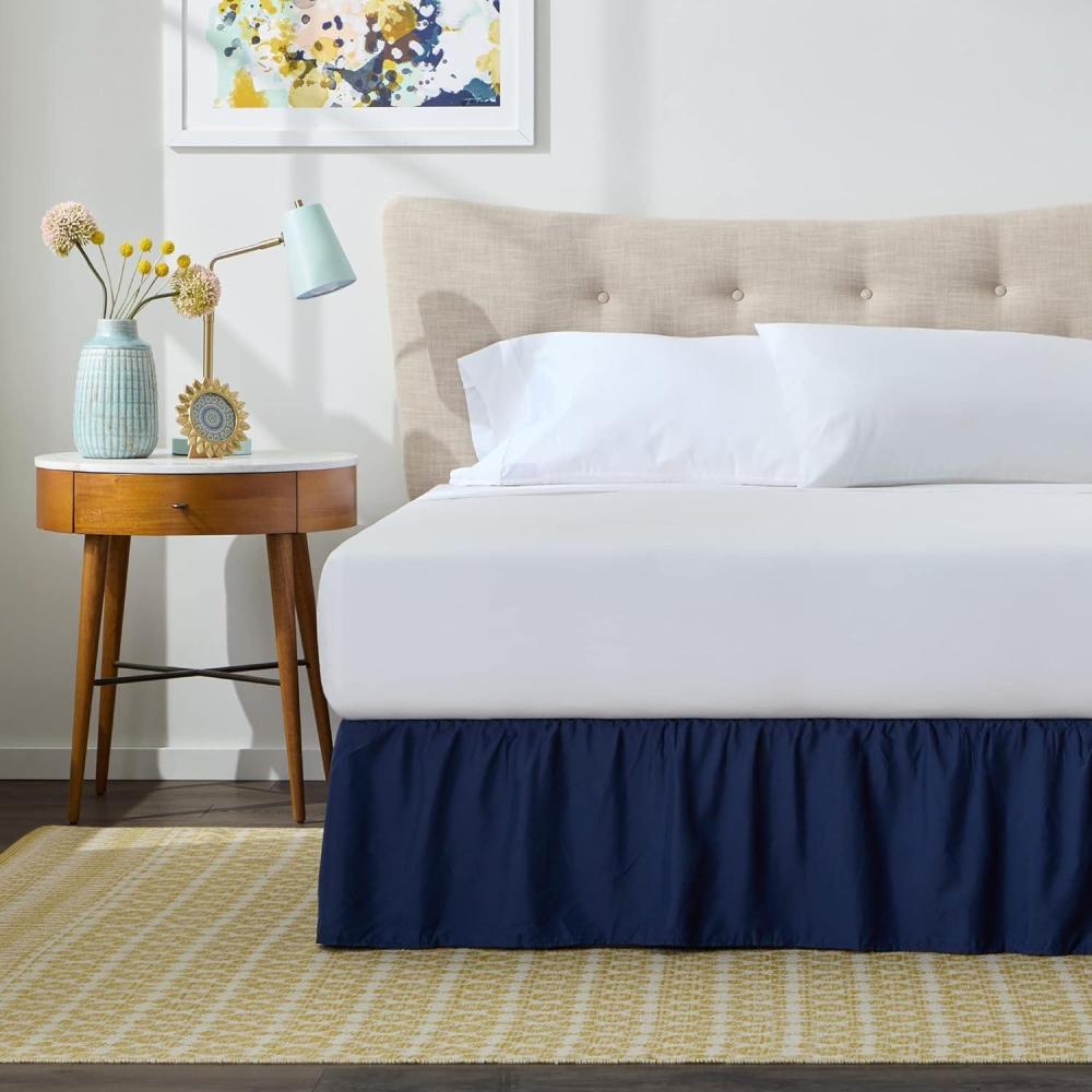 imageLinenspa 14 Inch Microfiber Ruffle Bed Skirt  Wrinkle and Fade Resistant  Machine Washable  Easy Use Ruffle Bed SkirtNavy