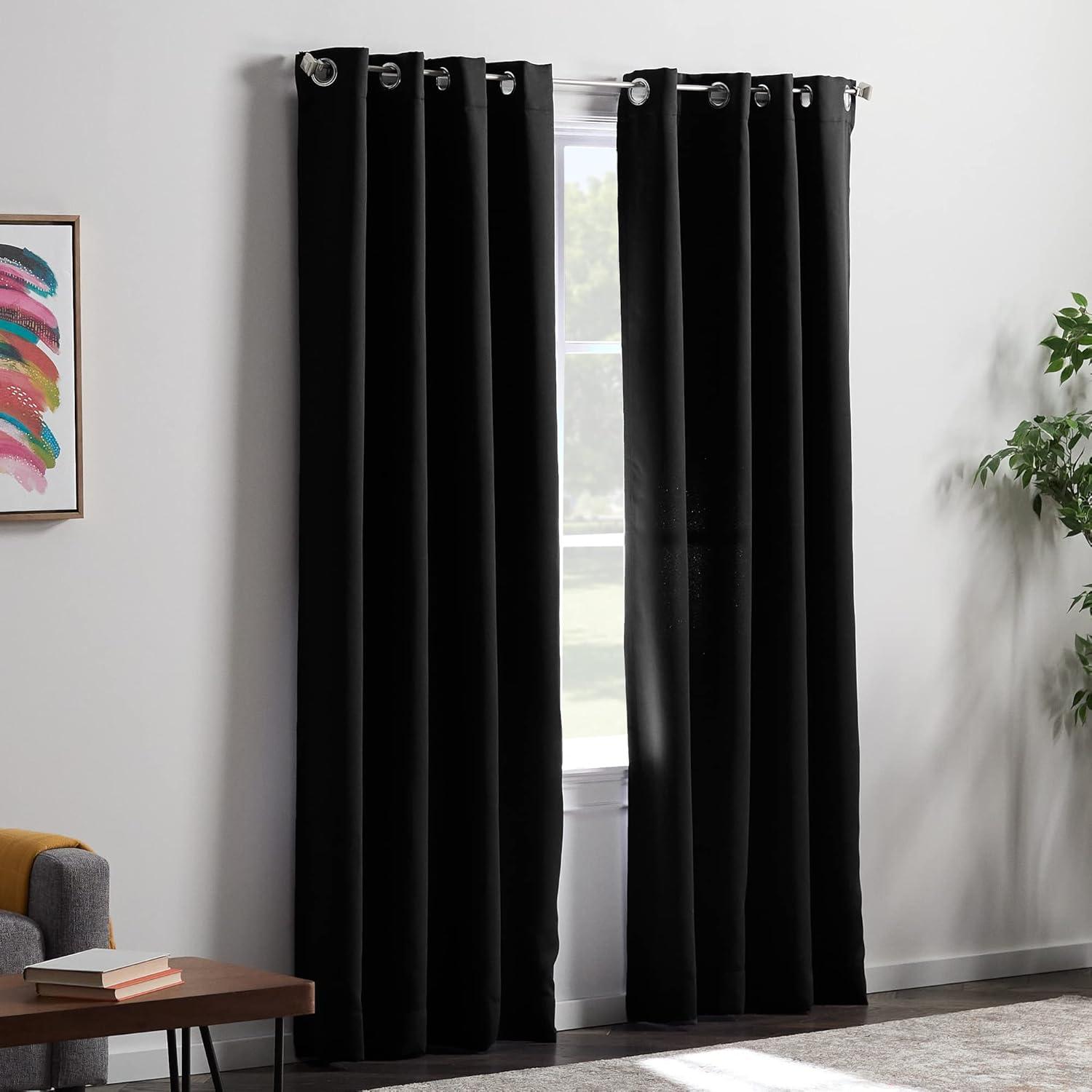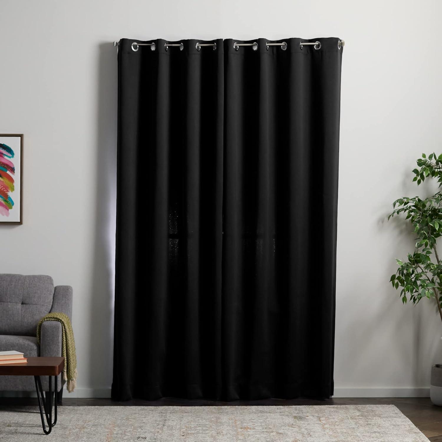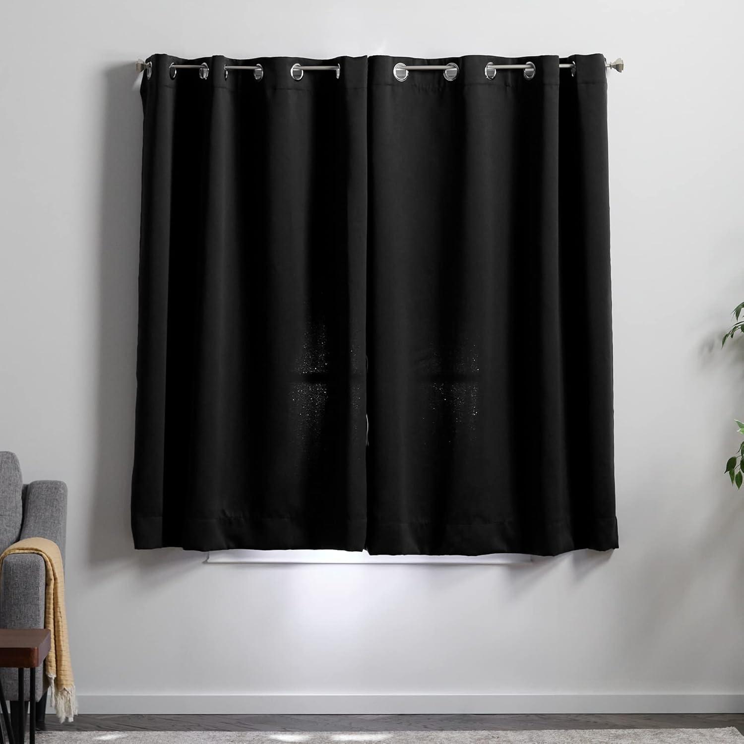Linenspa 85% Blackout Curtain 2 Panels Set - White Curtains 63 Inch Length - Thermal Insulated, Noise Reducing - Dorm Room Essentials(Black)