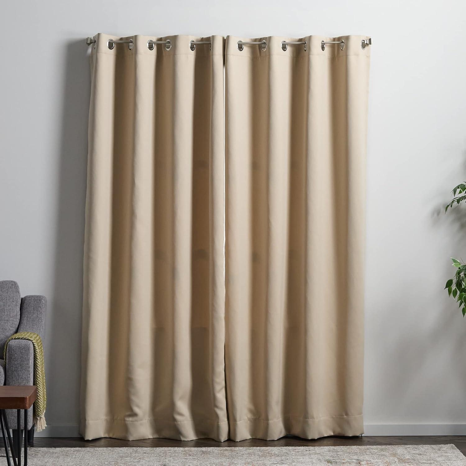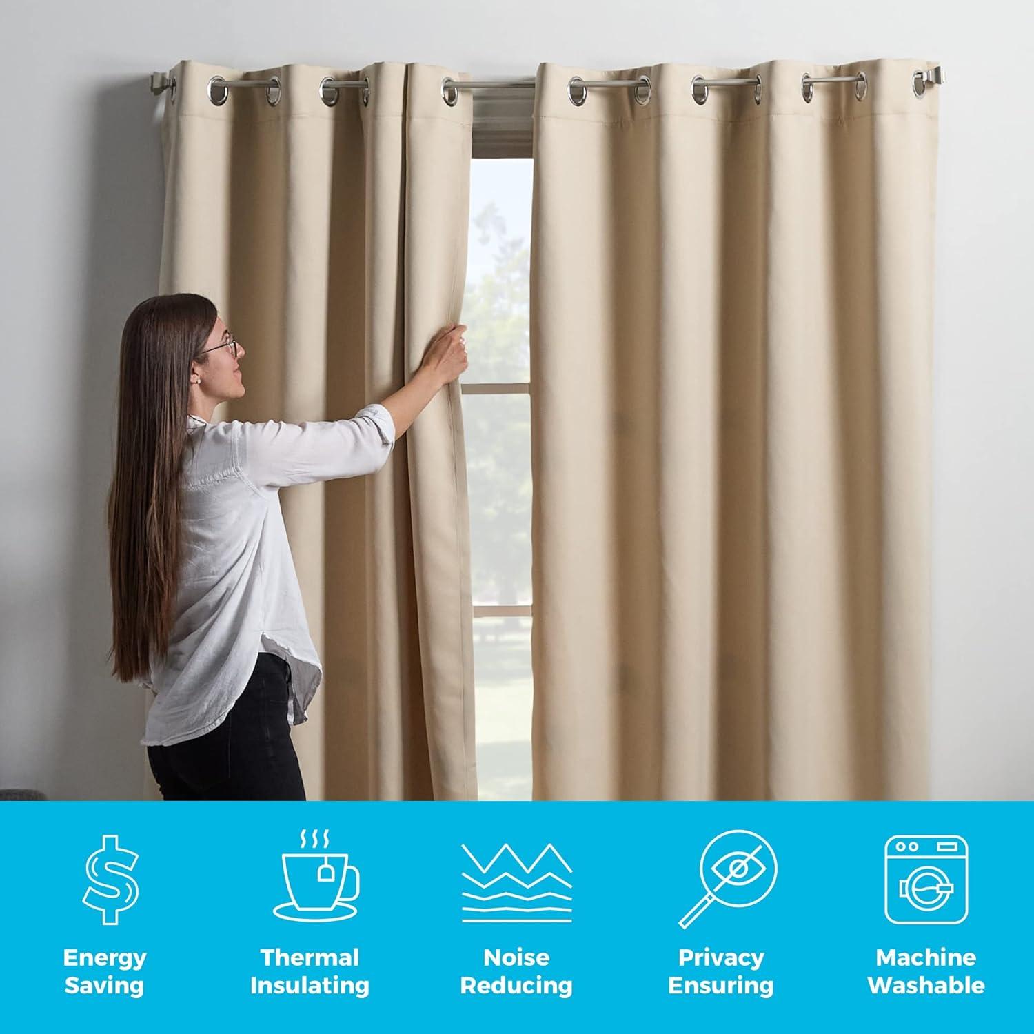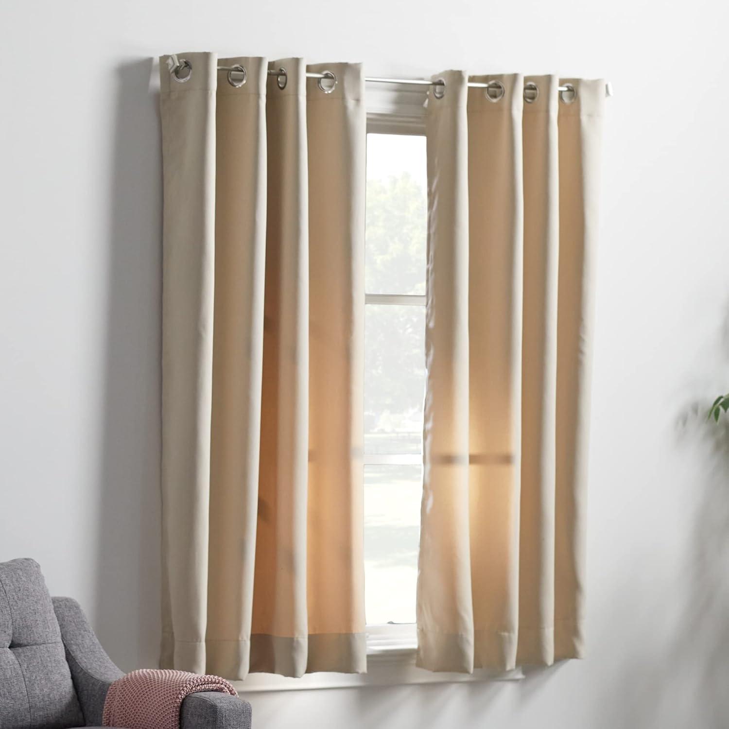 Linenspa 85% Blackout Curtain 2 Panels Set - White Curtains 63 Inch Length - Thermal Insulated, Noise Reducing - Dorm Room Essentials(Tan)