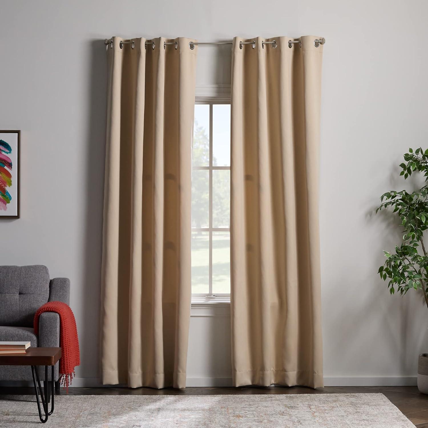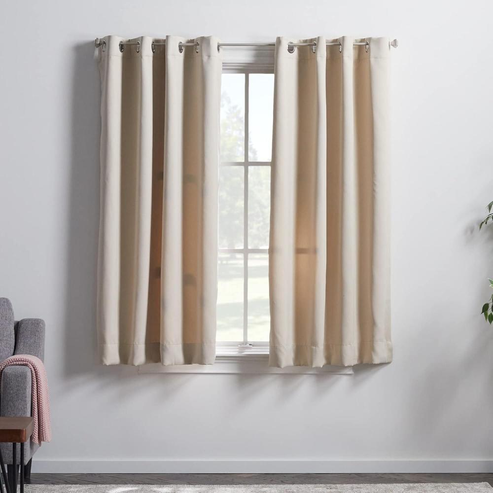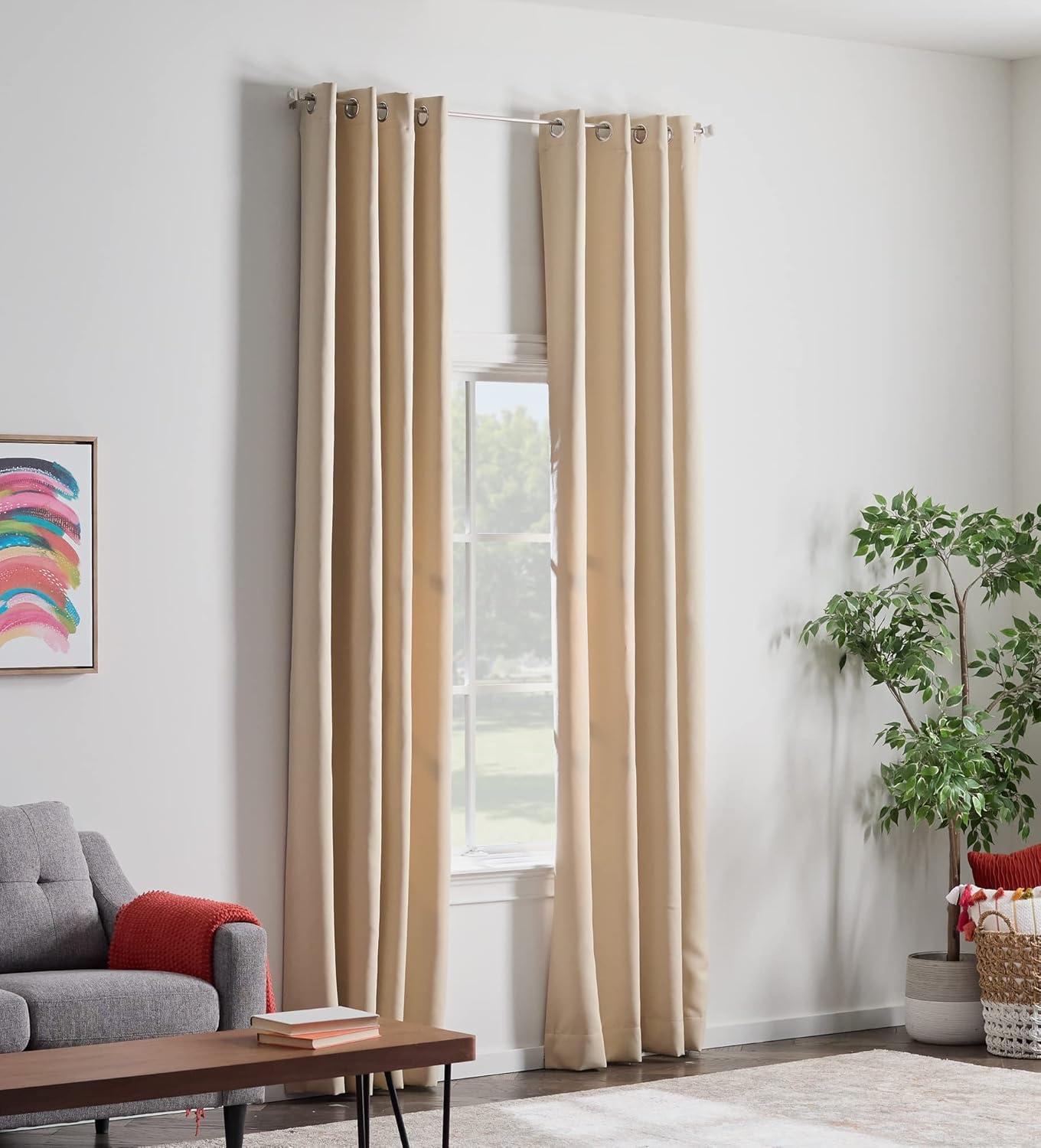 Linenspa 85% Blackout Curtain 2 Panels Set – White Curtains 63 Inch Length – Thermal Insulated, Noise Reducing – Dorm Room Essentials(Tan)