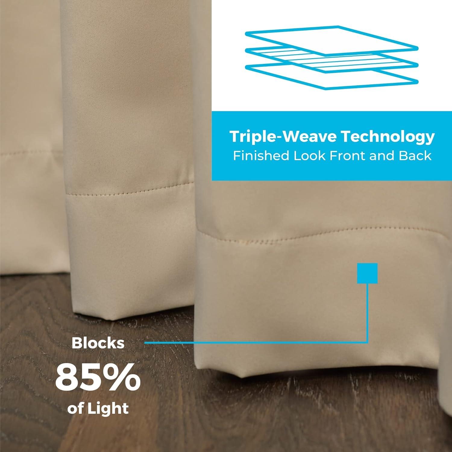 From night shift employees to napping babies, and everyone in between, block out light, noise, and extreme temperatures with a set of Linenspa 85% 63 Inch Blackout Curtains. Designed using triple-weave technology, these room darkening curtains will close your room to light and UV rays, while reducing sound and regulating temperature. The grommet curtain panels are each topped with rust-resistant grommets for easy sliding, while the 100% polyester fabric is soft, durable, and machine washable. Perfect as bedroom curtains, living room curtains, or kitchen curtains, use them on any window as an added functional touch.