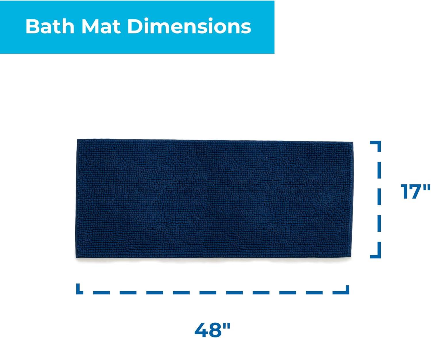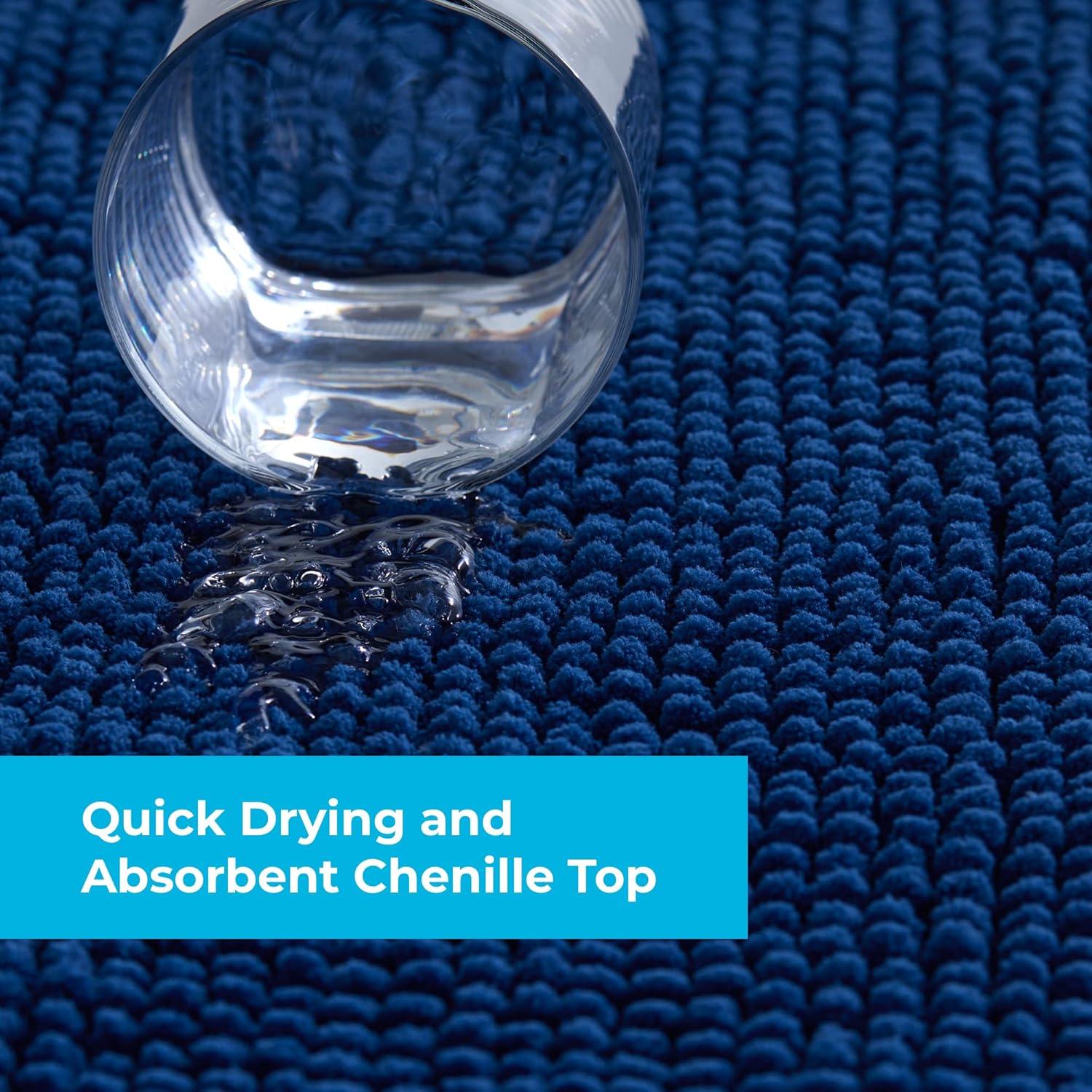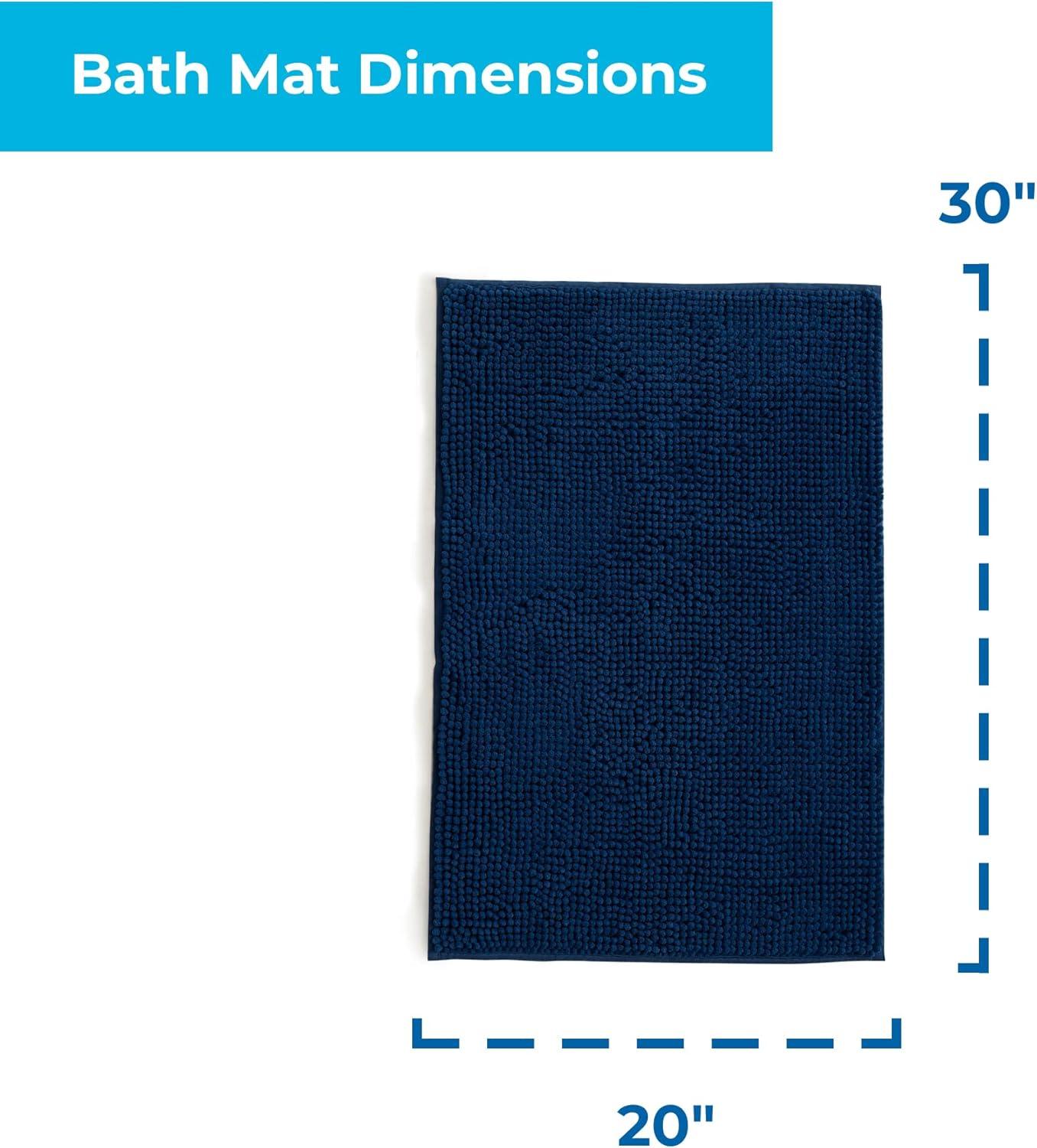 Linenspa Chenille Bath Mat— 1 Piece, Non Slip, Water Absorbent, Fast Drying, Machine Washable, Bath Rug For Bathroom - Dorm Room Essentials(Navy)