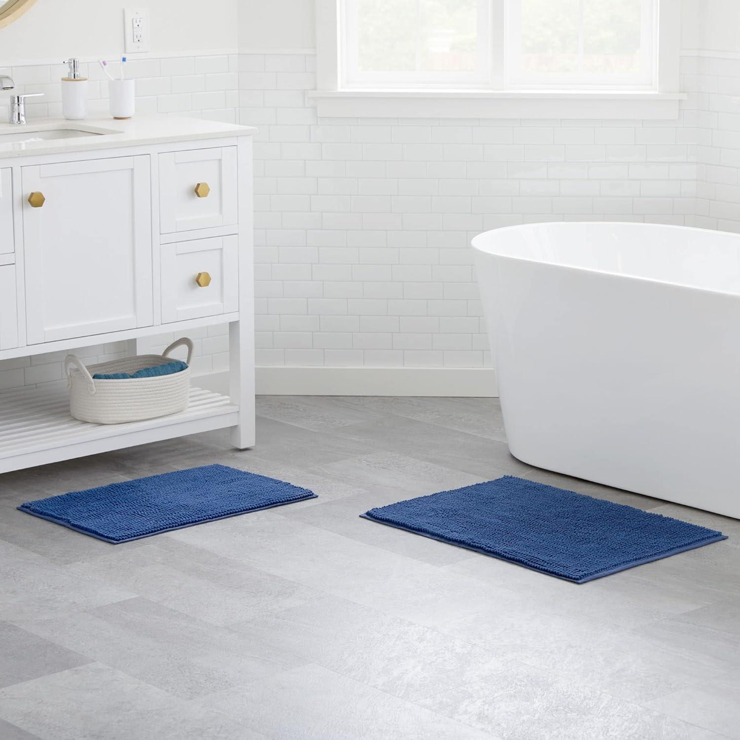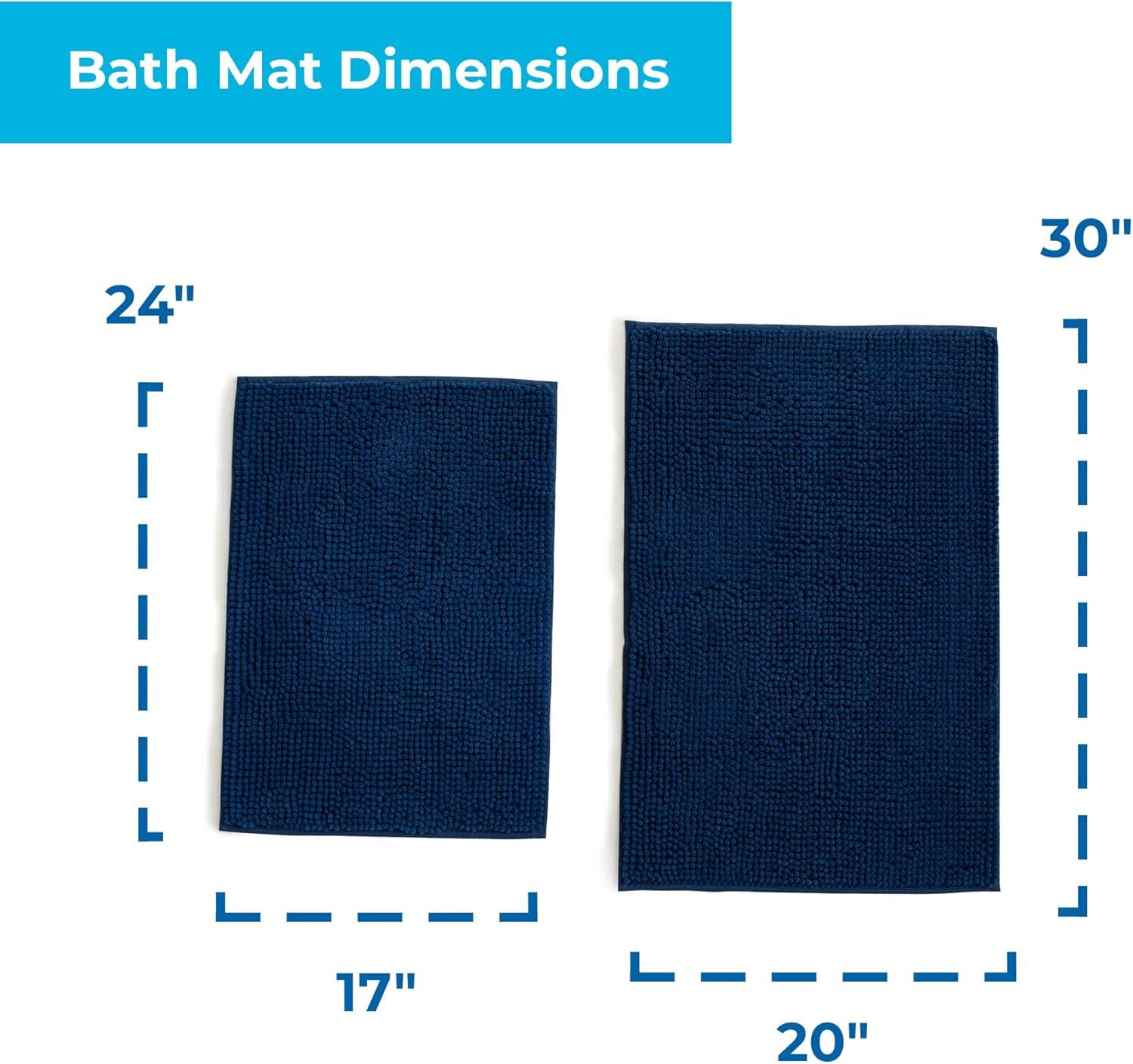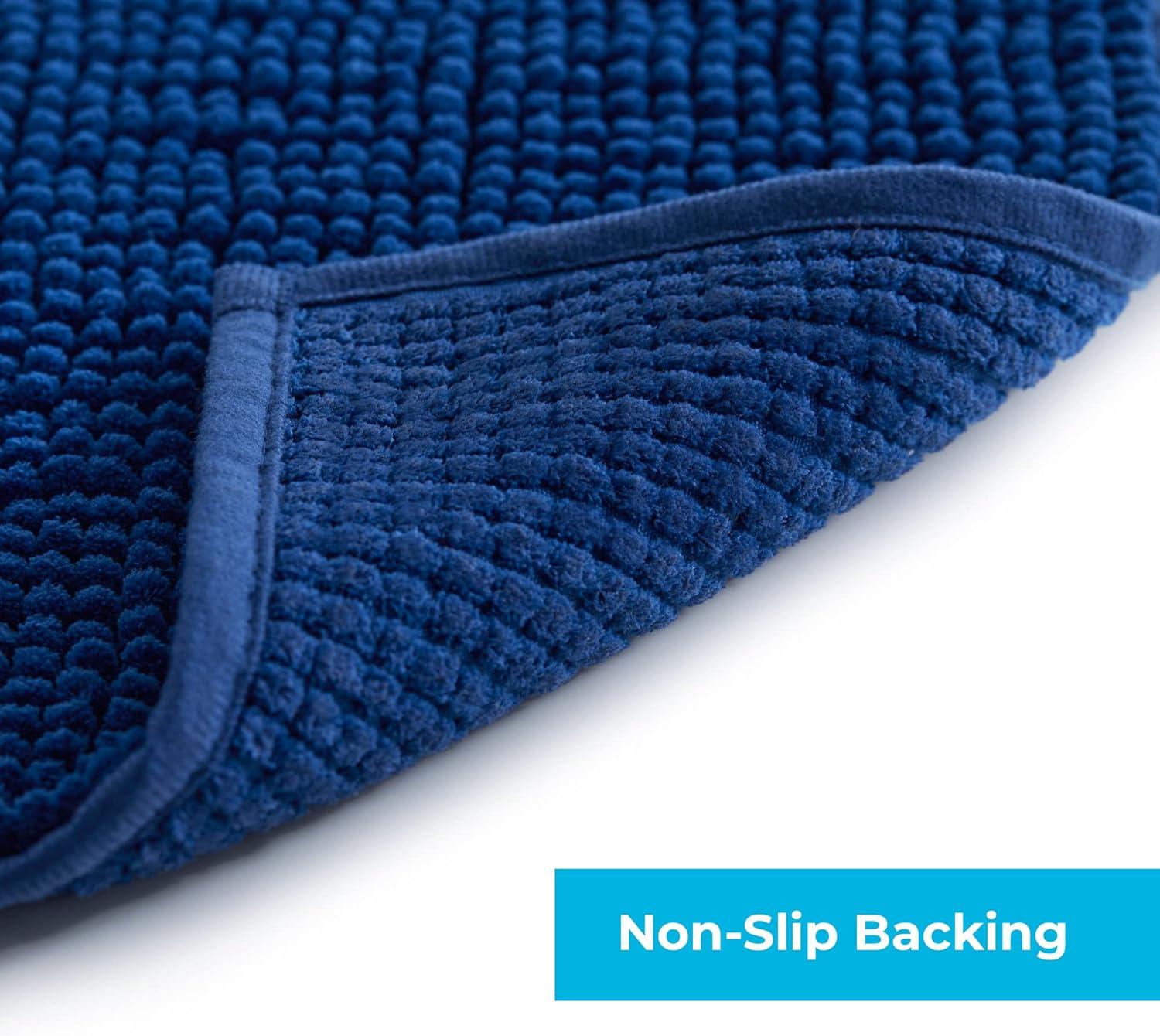 Linenspa Chenille Bath Mat— 1 Piece, Non Slip, Water Absorbent, Fast Drying, Machine Washable, Bath Rug For Bathroom - Dorm Room Essentials(Navy)
