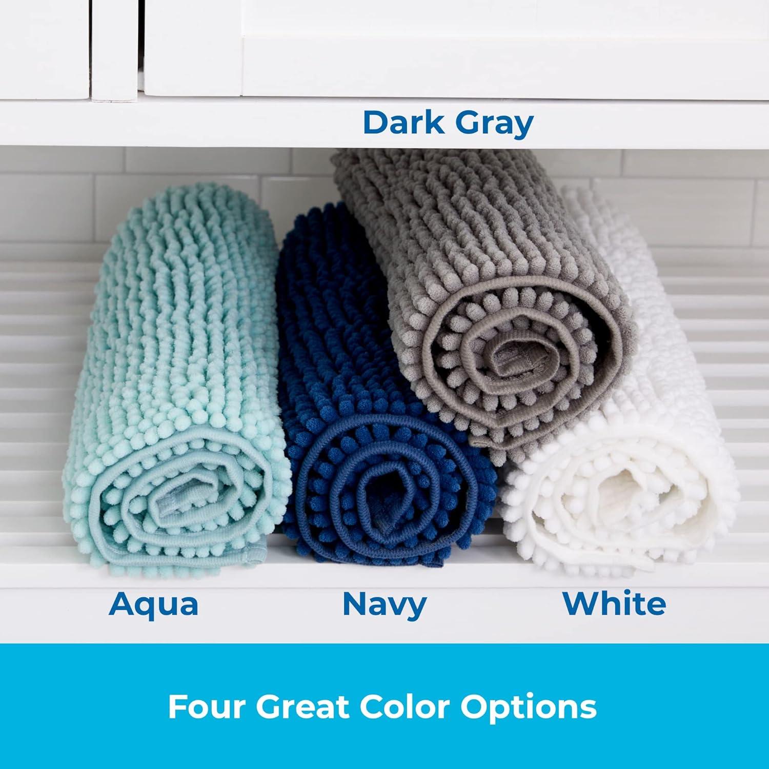 ENHANCE YOUR SPACE: From bathrooms to kitchens, and any space in between, your chenille bath mat is the perfect versatile piece. Available in four great color options—Aqua, Dark Gray, Navy, and White.
