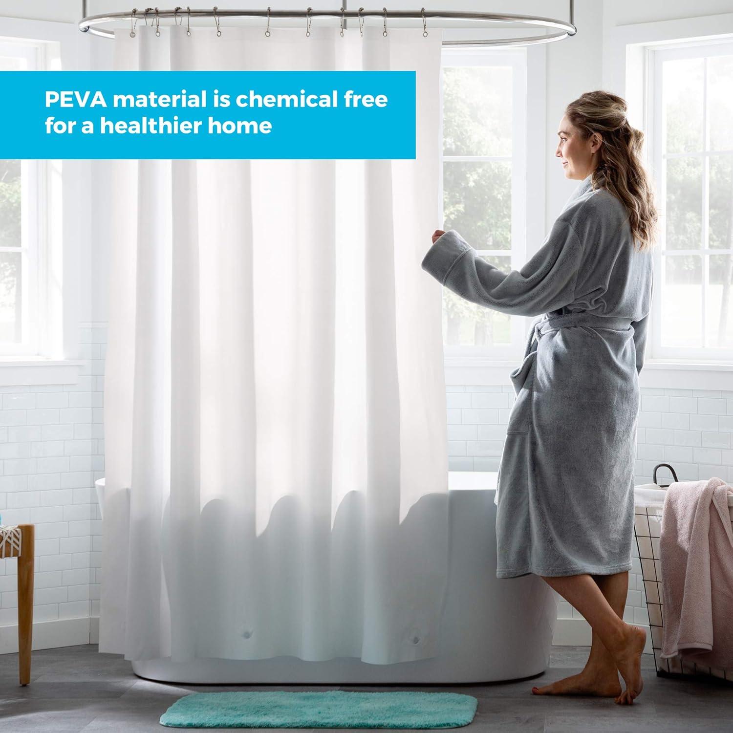 A BETTER VINYL: Shower curtain liner is made with PEVA material to ensure a healthier option for your family that doesn’t contain any harmful chemicals