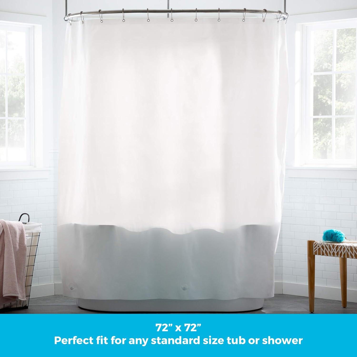 THREE COLOR CHOICES: Comes in clear, white, and frosted color options and can be used alone or paired with a fabric curtain. This 72 x 72 shower curtain liner fits any standard shower