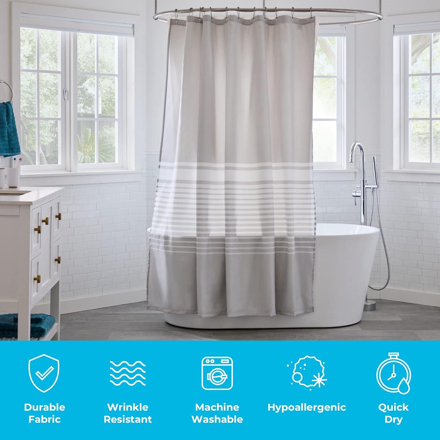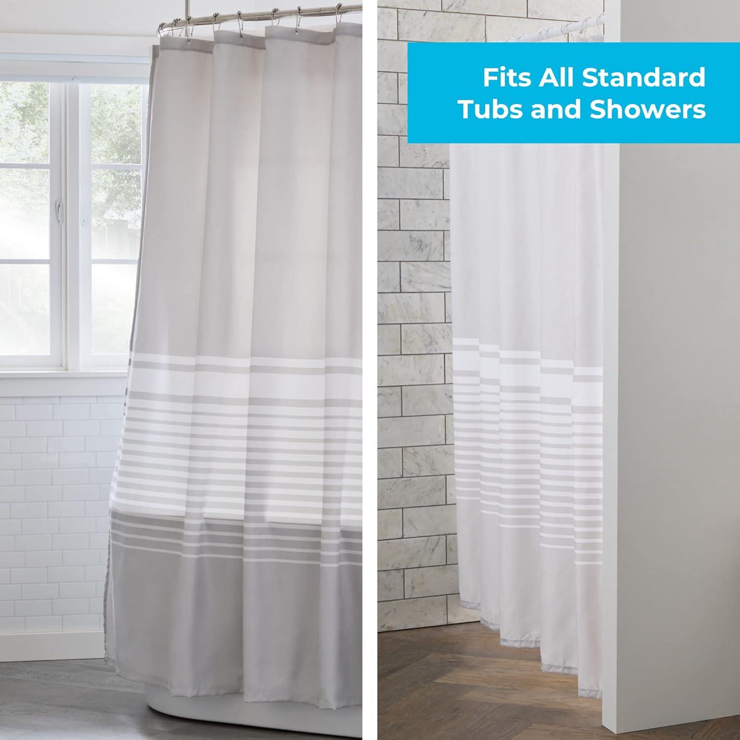 Linenspa Green Leaf Shower Curtain Water Resistant, Machine Washable, Polyester Dorm Room Essentials(Gray Stripe)
