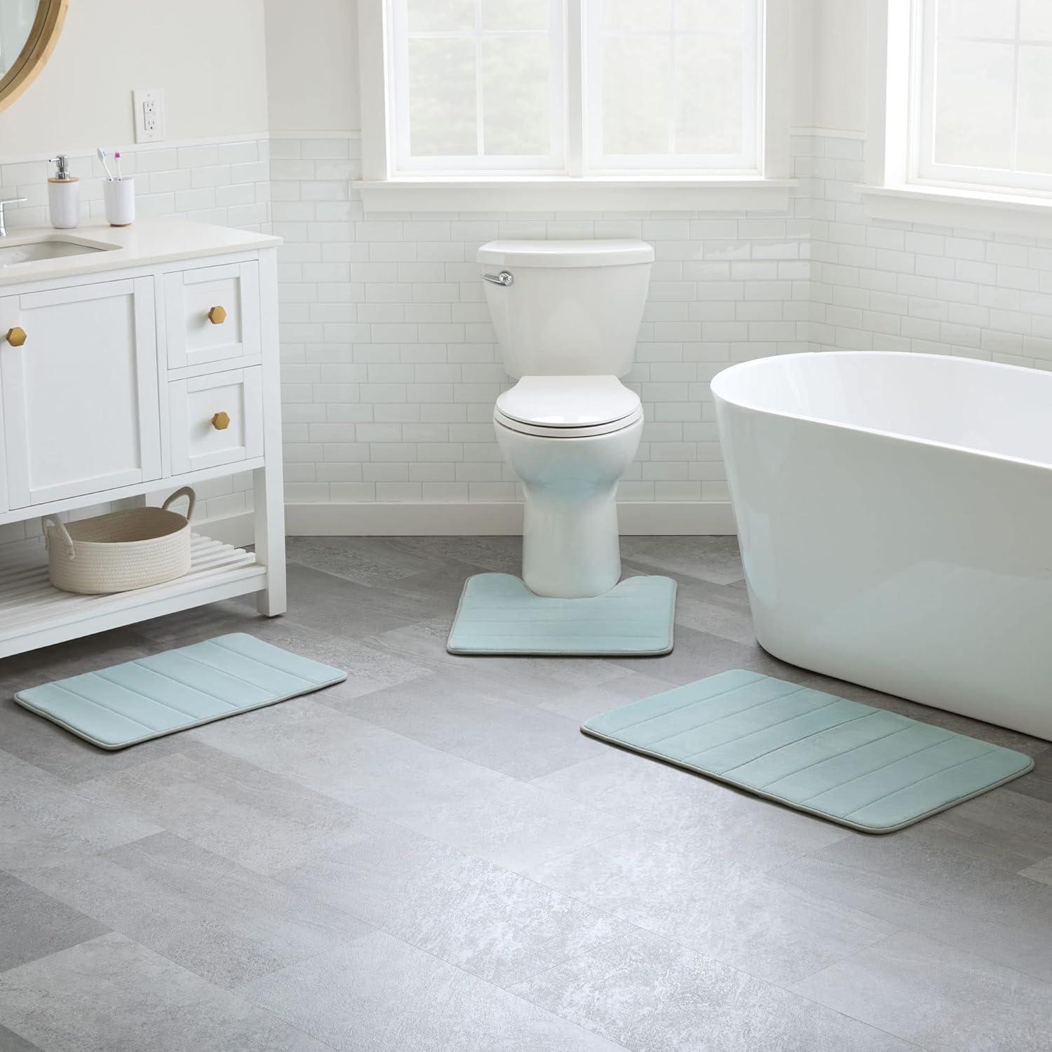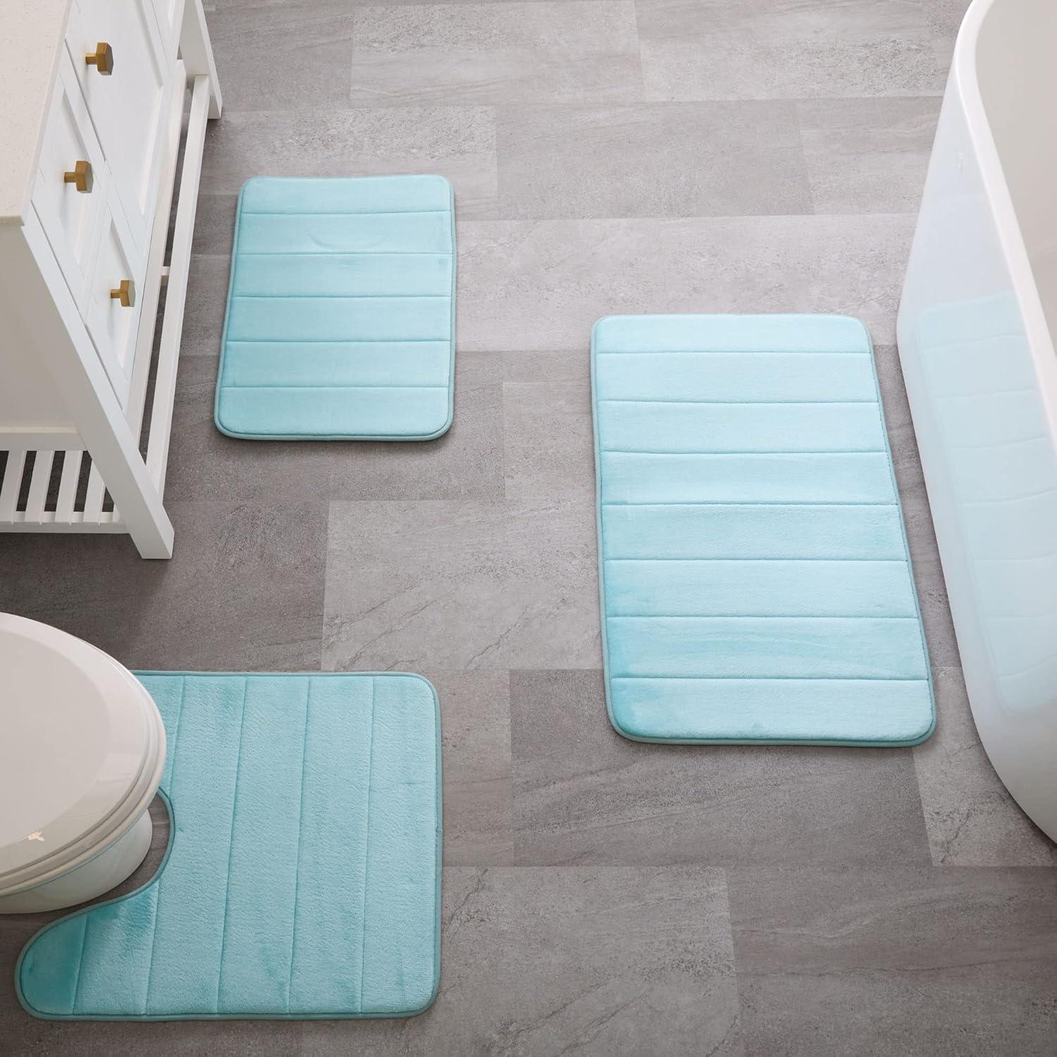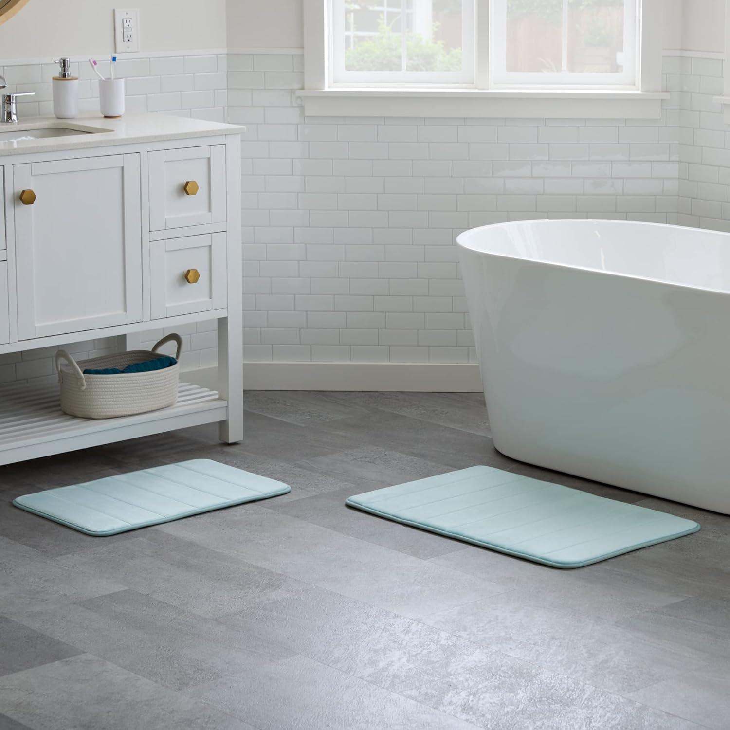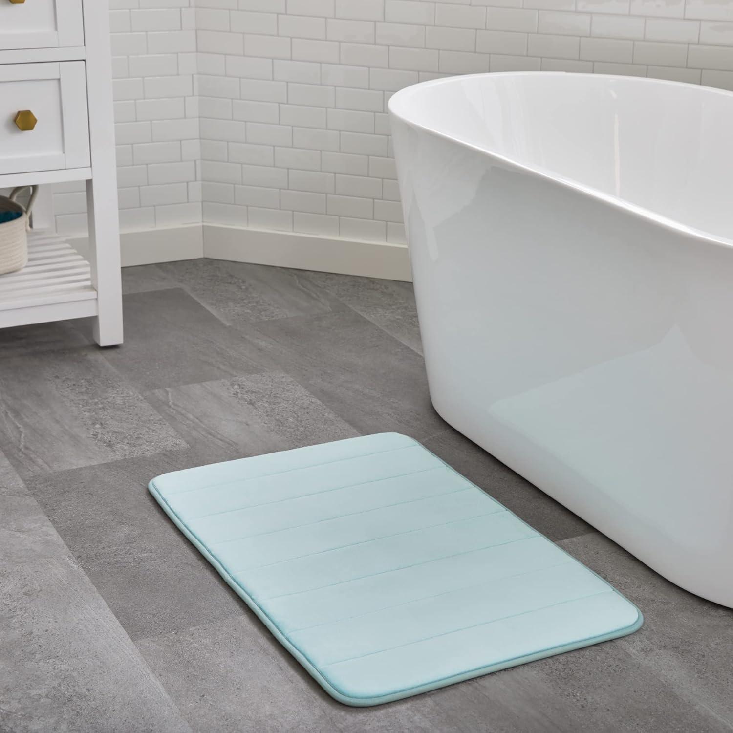 BRIGHTEN YOUR SPACE: Available in four great color options—Aqua, Dark Gray, Navy, and White—so your memory foam bath mat is sure to fit your style and coordinate perfectly with your décor. Colors may vary at certain angles.