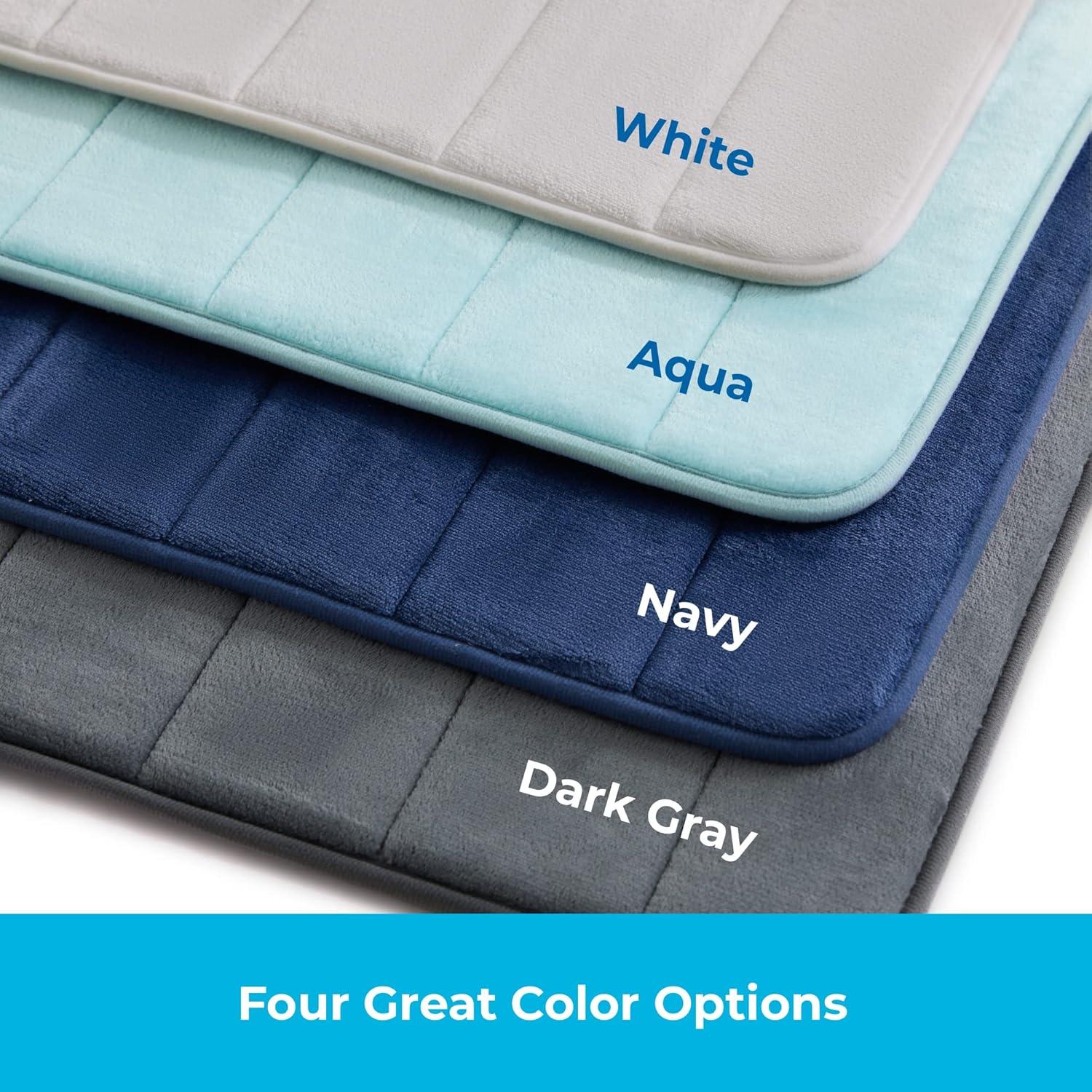 BRIGHTEN YOUR SPACE: Available in four great color options—Aqua, Dark Gray, Navy, and White—so your memory foam bath mat is sure to fit your style and coordinate perfectly with your décor. Colors may vary at certain angles.