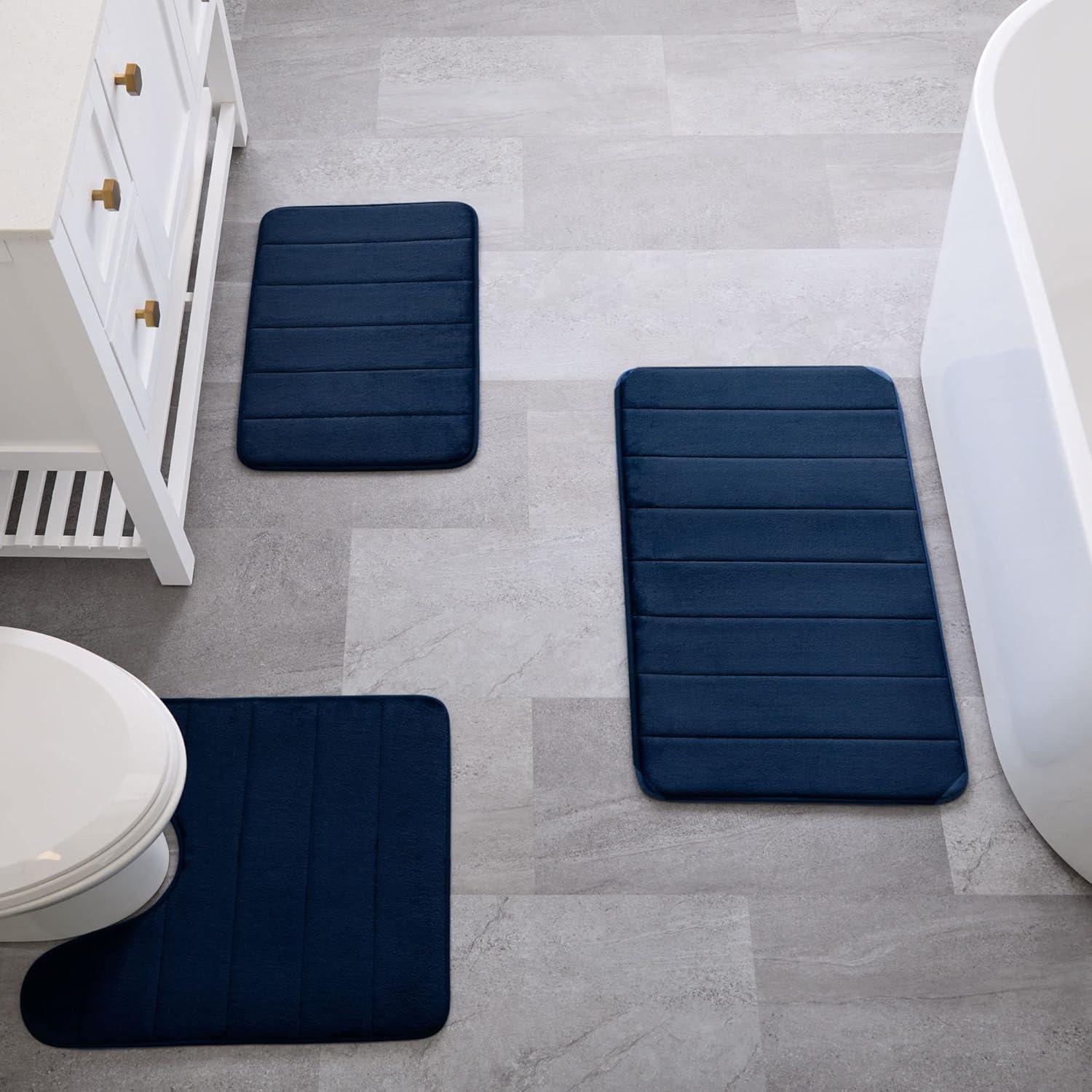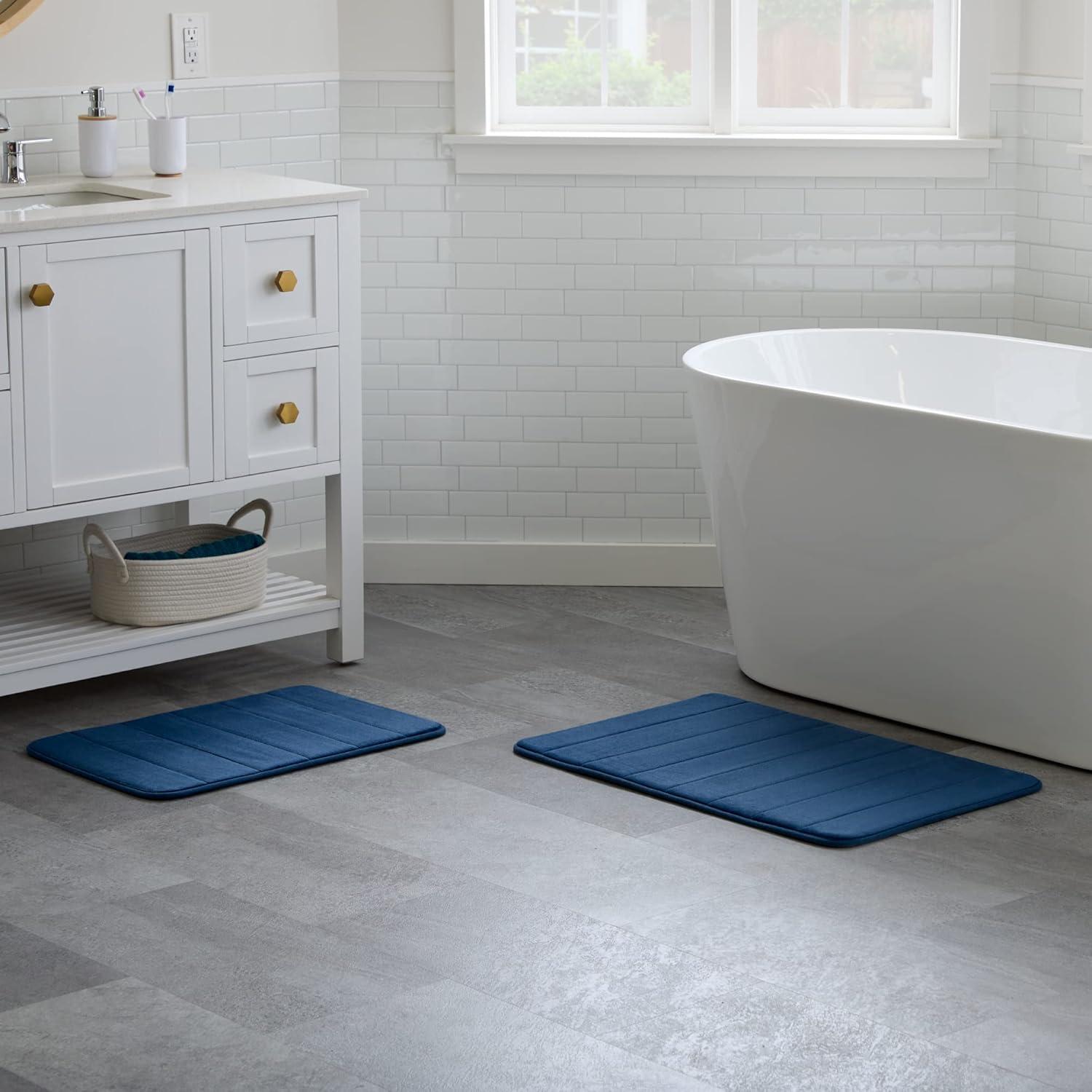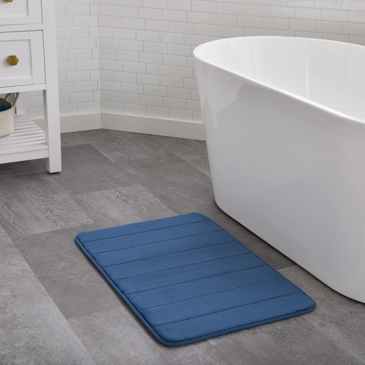 Linenspa Memory Foam Bath Mat — 1 Piece, Non-Slip, Water Absorbent, Fast-Drying, Machine Washable, Bath Rug For Bathroom - Dorm Room Essentials(Navy)