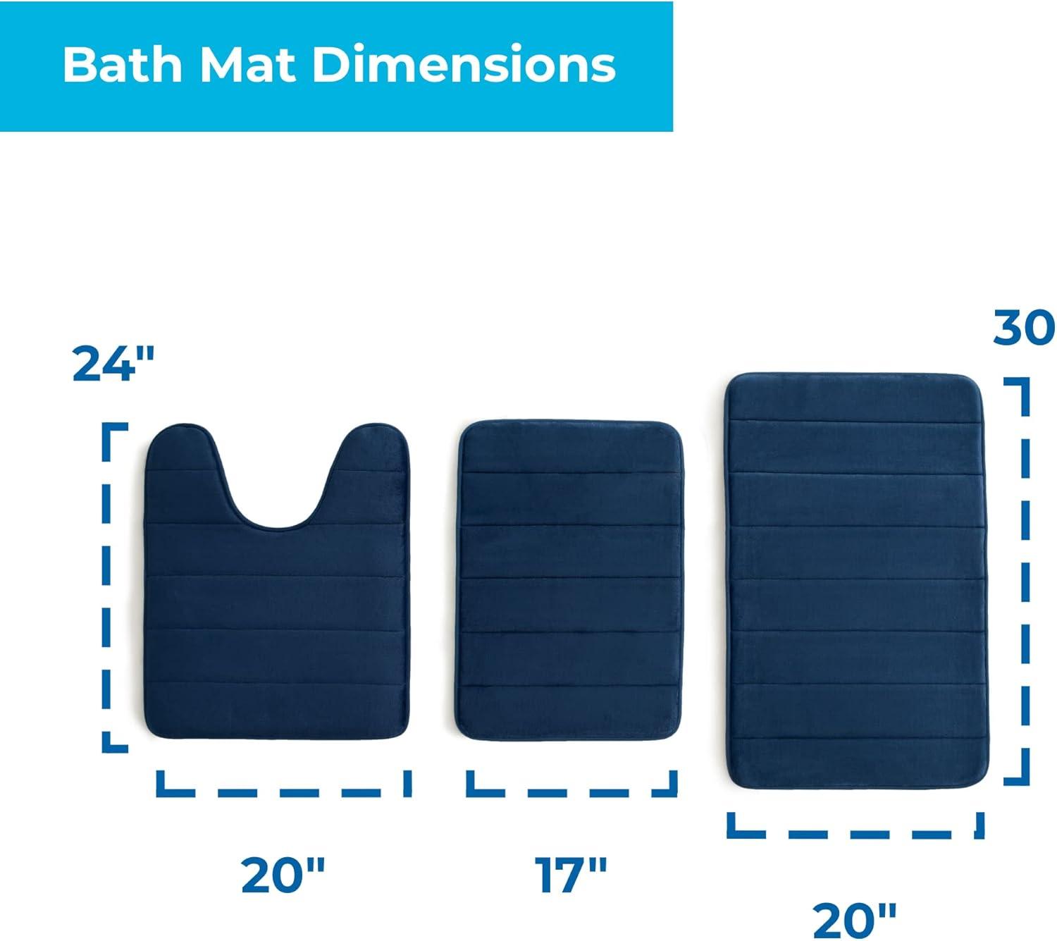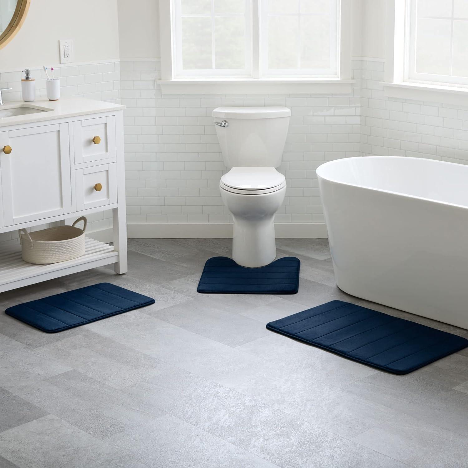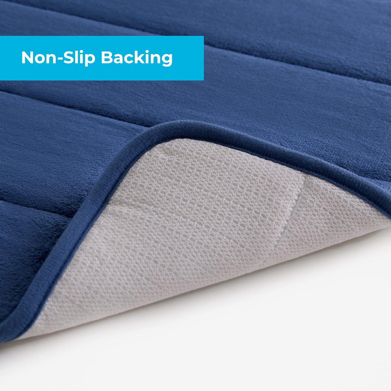 Linenspa Memory Foam Bath Mat — 1 Piece, Non-Slip, Water Absorbent, Fast-Drying, Machine Washable, Bath Rug For Bathroom - Dorm Room Essentials(Navy)