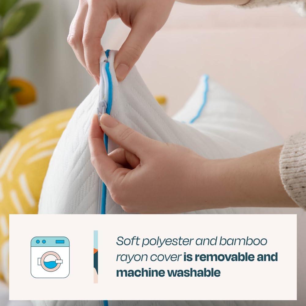 MACHINE WASHABLE POLYESTER AND BAMBOO RAYON COVER: The soft quilted cover is made from a combination of durable polyester and soft bamboo rayon for a clean, crisp feel; cover is removable and machine washable