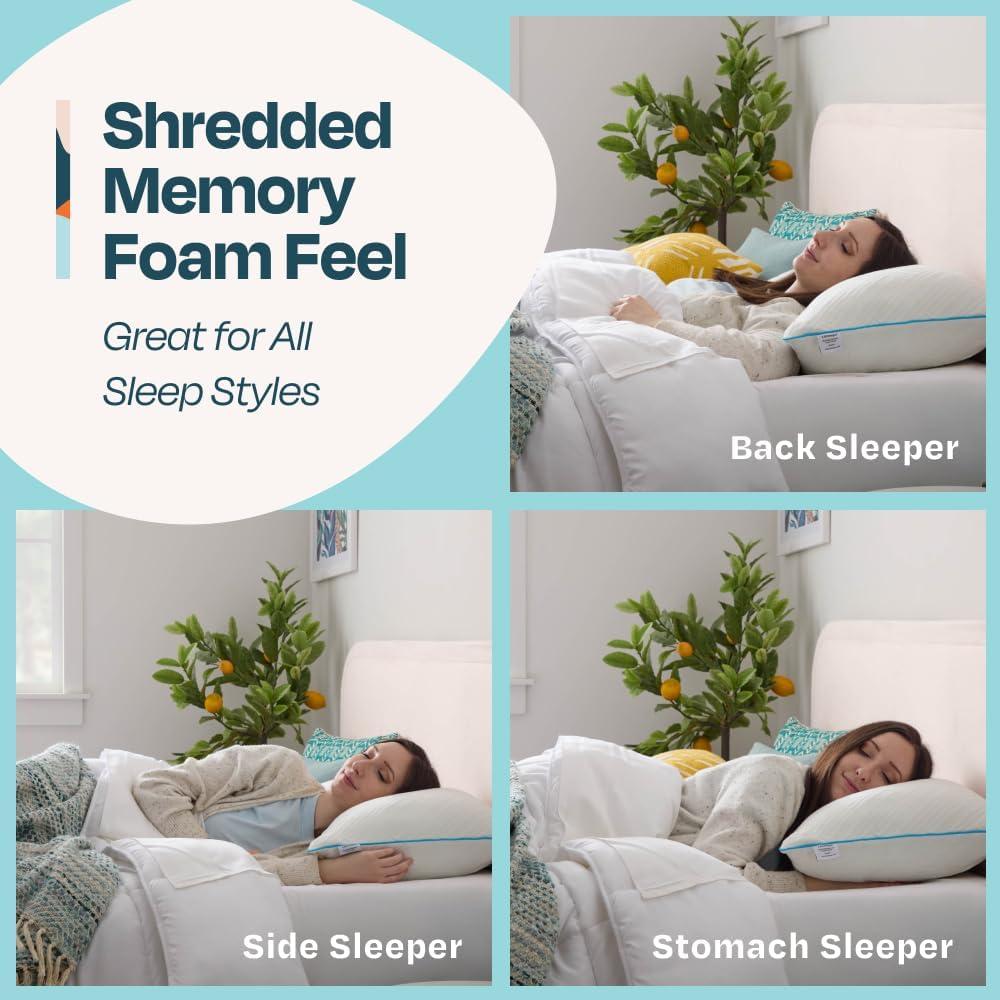 MOLDABLE SHREDDED MEMORY FOAM: Filled with shredded memory foam, this pillow provides a soft, cozy, and breathable cradle for your head