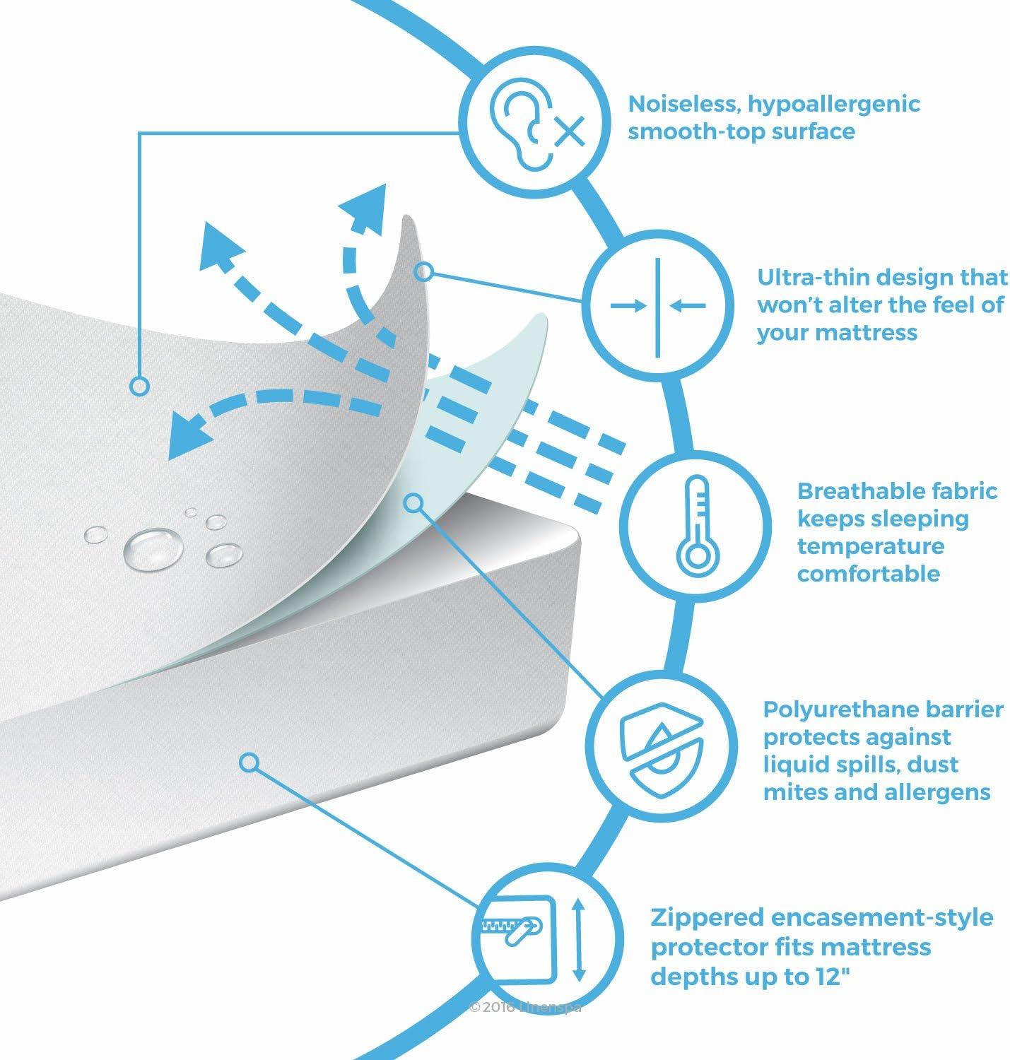 imageLinenspa Zippered Mattress Encasement  Twin Size Waterproof Mattress Protector  Quiet Cover ampamp Complete protection  Dorm Room Essentials WhiteWhite