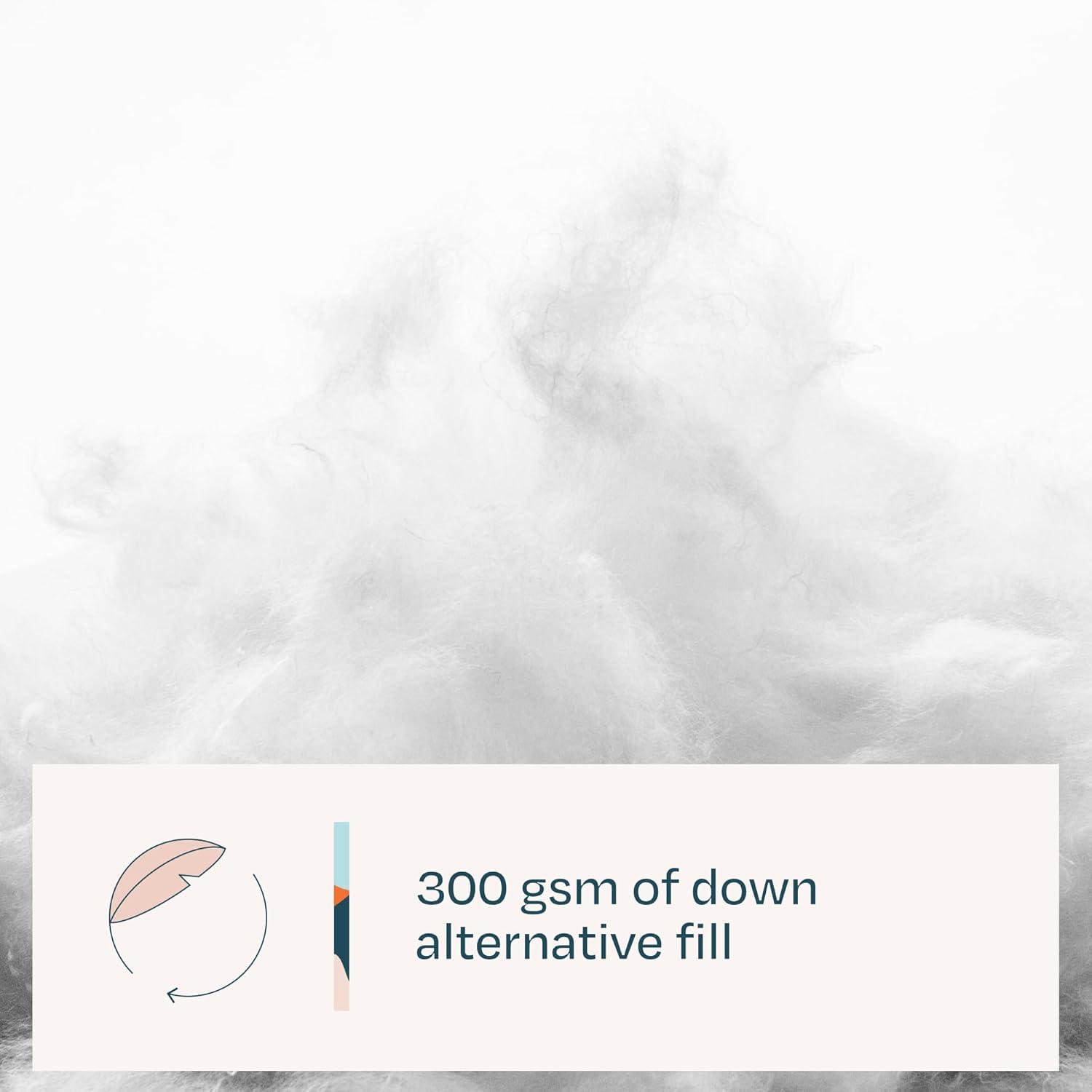 This fluffy comforter offers cozy all-season comfort and versatile style for any bedroom in your home. The crisp and clean all white look can stand on its own for a modern feel or be used as a fluffy duvet insert to fit your specific vibe. Complete with our patented 8 loops on the corners and sides, this comforter securely attaches to any duvet cover and won’t get twisted up in the night. But, if you want to use it as a blanket, they won’t get in your way. And the convenient box stitching keeps the fill evenly distributed no matter what. Comfortable down alternative fill provides all the softness of down without the odor and sharp quills, making this comforter great for those with allergies. Perfect for all-season use, this comforter creates a stylish, comfortable, and cozy look everyone in the family will love.