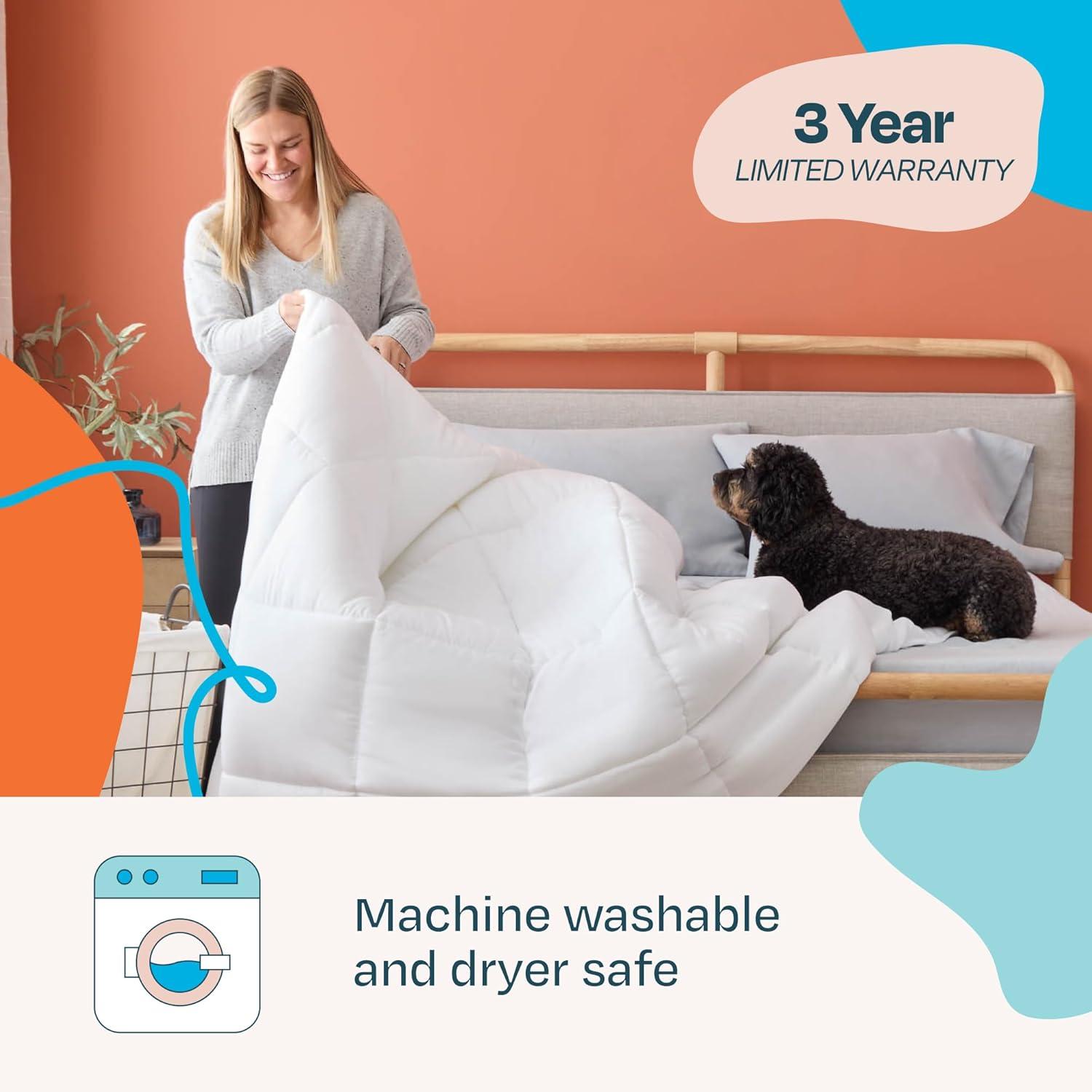 MACHINE WASHABLE: Simply wash on gentle cycle and air dry, or if you’re short on time, toss in your dryer on a low heat setting; comforter has a 3-year warranty and is available in multiple standard and oversized dimensions