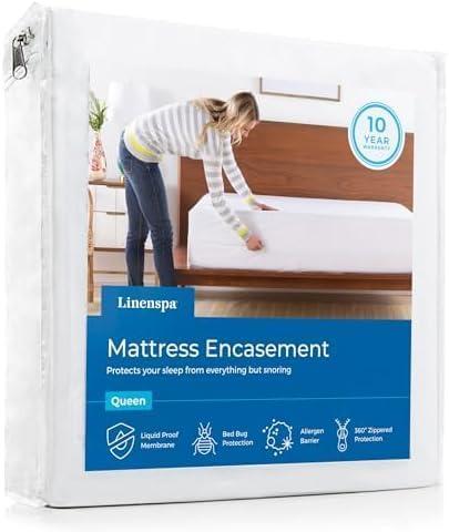 imageLinenspa Zippered Mattress Encasement  Twin Size Waterproof Mattress Protector  Quiet Cover ampamp Complete protection  Dorm Room Essentials WhiteWhite